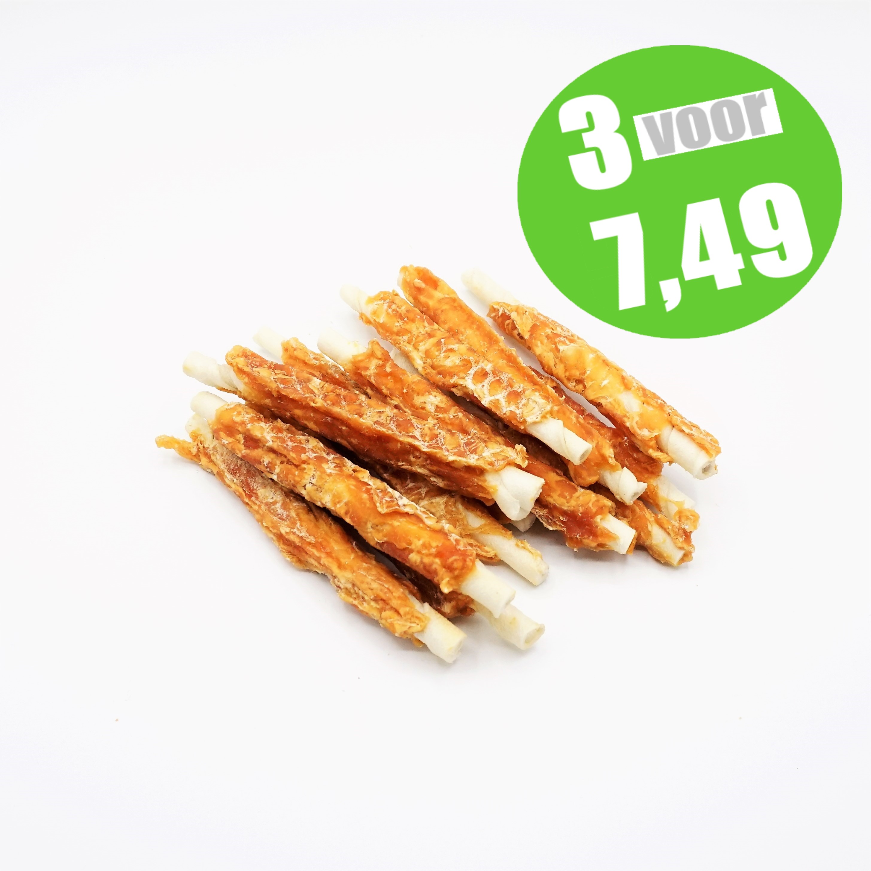 IngrediëntenKip, ongelooide runderhuid, aardappel zetmeel, glycerine en sorbitol.AnalyseRuw eiwit 48,0%Ruw vet 4,5%Ruwe As 5,5%Ruwe Celstof 1,5%Vocht 20,0%