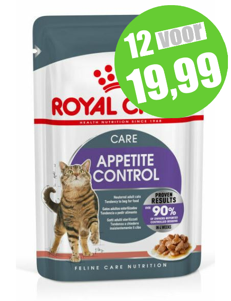 Royal Canin Appetite Control Care in Gravy (brokjes in saus) is een complete en uitgebalanceerde voeding die speciaal is ontwikkeld om bedelen onder controle te helpen houden. De voeding heeft een gematigd vetgehalte en uitgebalanceerd energiegehalte om je kat fit te helpen houden en tegelijkertijd het risico op overmatige gewichtstoename te helpen beperken. Het hoge vochtgehalte helpt de eetlust te stillen van katten die de neiging hebben om te bedelen om eten. Bovendien is de formule verrijkt met L-carnitine, een aminozuur waarvan bekend is dat het betrokken is bij een gezonde vetstofwisseling. Royal Canin Appetite Control Care heeft bewezen resultaten. Uit een interne studie van Royal Canin blijkt dat meer dan 90% van de katteneigenaren aangeeft dat het bedelgedrag van hun kat na 4 weken met het Appetite Control Care-voedingsprogramma (combinatie van droogvoeding en natvoeding) onder controle is. Royal Canin Appetite Control Care is ook verkrijgbaar in de vorm van droogvoeding (brokken). Door natvoeding en droogvoeding te combineren, bied je je kat de variatie waar ze zo van houdt.