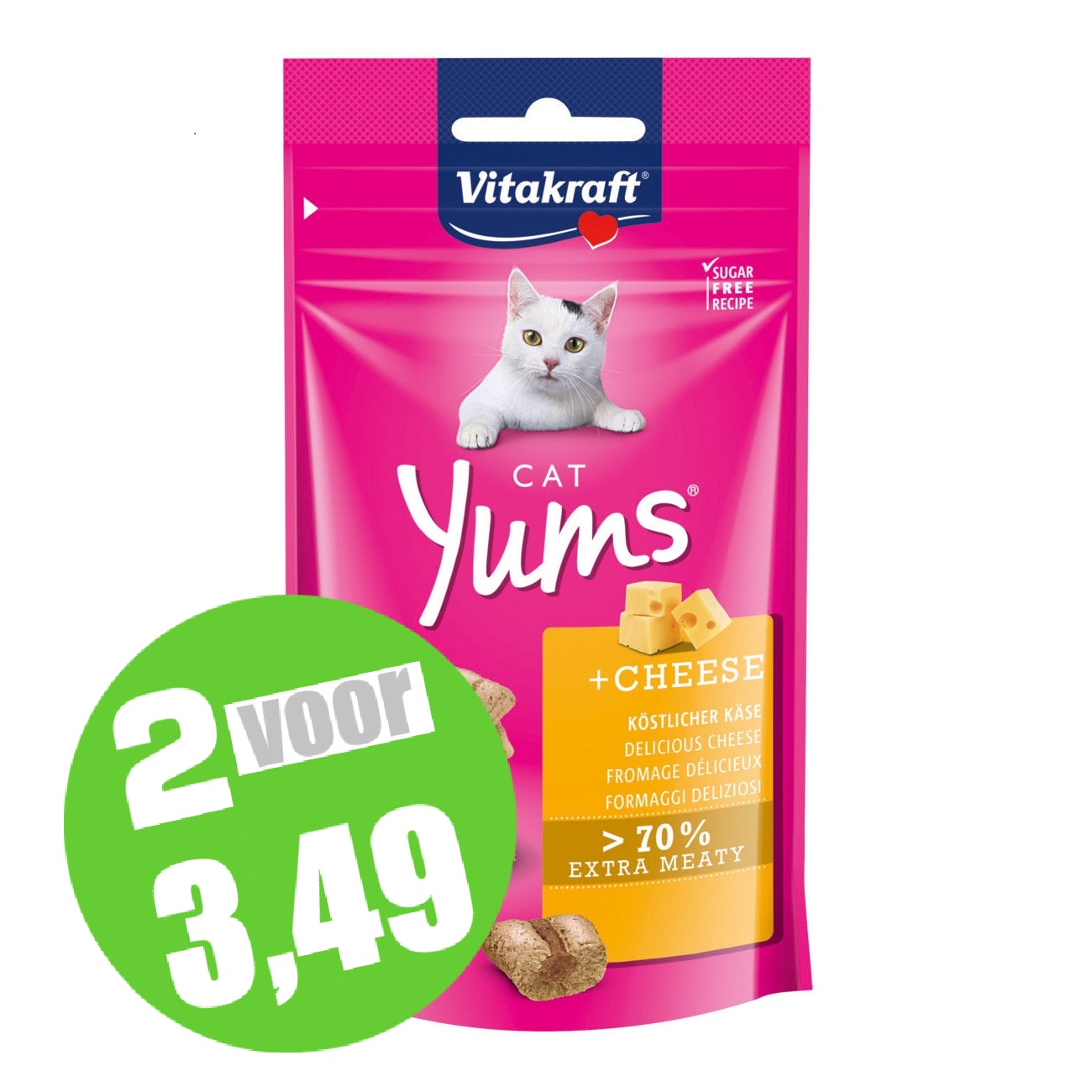 Sappige kattensnacks met kaas. Cat Yums zijn met de beste ingrediënten en volgens suikervrije receptuur bereid. Elke snack is met een zachte, zichtbare vulling en extra vlees gevuld. De snacks zijn met zorg in de oven bereid.