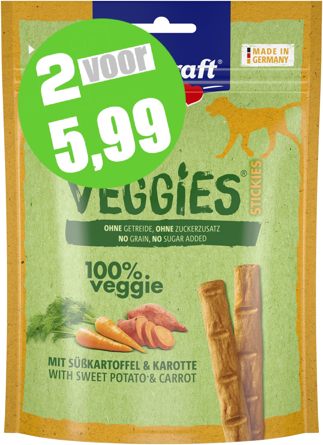 Eet jouw hond ook graag de wortels uit je groententuin? Met zo’n natuurfan als jouw alleseter ben je bij Vitakraft aan het goede adres! Verras jouw snoepkont met Vita Veggies®: 100% vegetarische hondensnacks. Deze traktatie brengt variatie in het snackmenu van je hond met als extra voordeel dat de belasting op het milieu substantieel lager is dan bij traditionele snacks!