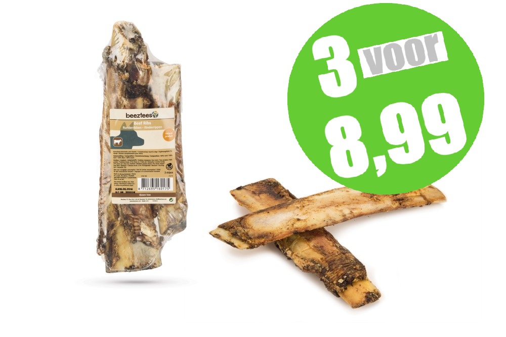 De Beeztees Runderrib is een heerlijk ribbetje, waarmee je jouw hond een groot plezier doet. Op het harde gedeelte van deze snack zit soms een beetje vlees, wat jouw hond als eerste op zal snoepen. Verder kan jouw hond op het harde gedeelte lekker kauwen, waardoor die zich niet snel zal vervelen. Deze runderrib is rijk aan calcium en is geschikt als beloning of als tussendoortje. - Rijk aan calcium Inhoud: 2ST