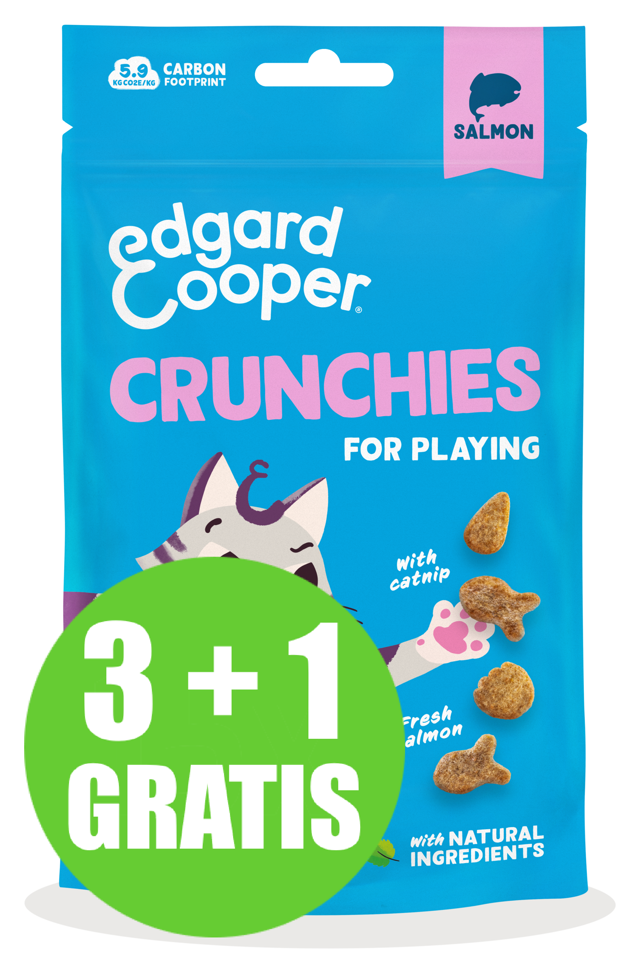 Onze Crunchies zijn gemaakt met lekker verse zalm en natuurlijke ingrediënten - zonder toegevoegde suiker of granen. Ze bestaan in verschillende vormen die nieuwsgierige katten nog nieuwsgieriger maken. En dat vleugje kattenkruid maakt het extra spannend.