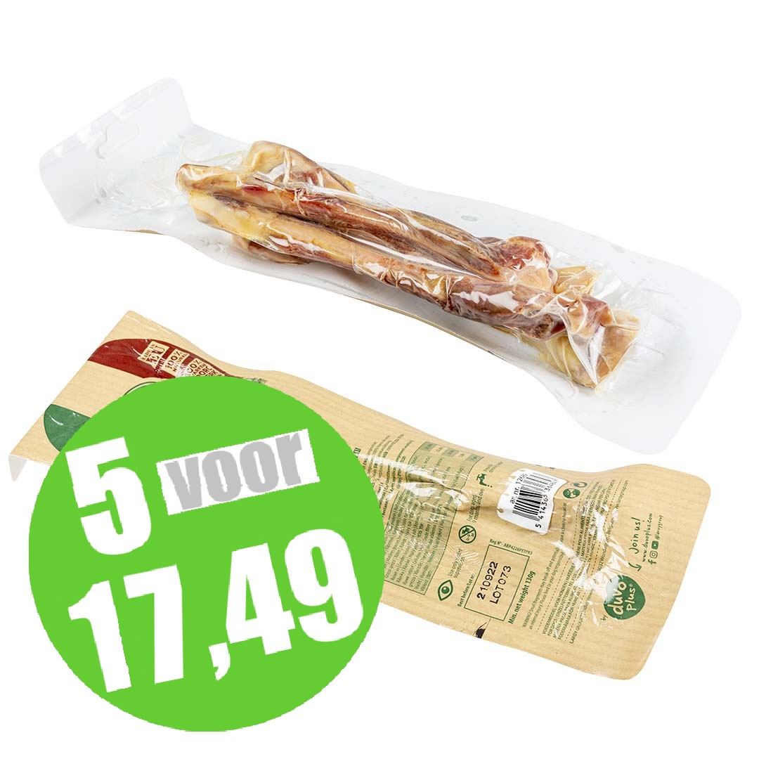 Deze lekkere Farmz Italiano varkensknook van duvoplus is een 100% natuurlijke lekkernij voor honden. Een vacuüm verpakte premium vleessnack die lang kauwplezier biedt, zonder toegevoegde geur-, kleur- of smaakstoffen.