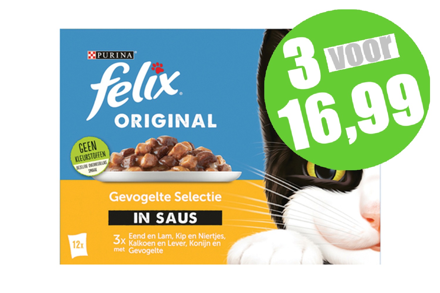 Felix Elke Dag Feest dubbel zo lekker is kattenvoeding die er zó lekker uitziet en zó goed ruikt, alsof de baas het zelf heeft klaargemaakt.