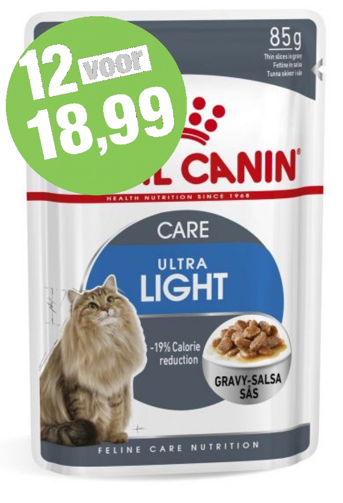 Je kat is gezond, toch? Of zou ze wel wat slanker kunnen? Ultra Light in Gravy van ROYAL CANIN® helpt de calorie-inname van je kat te beperken.