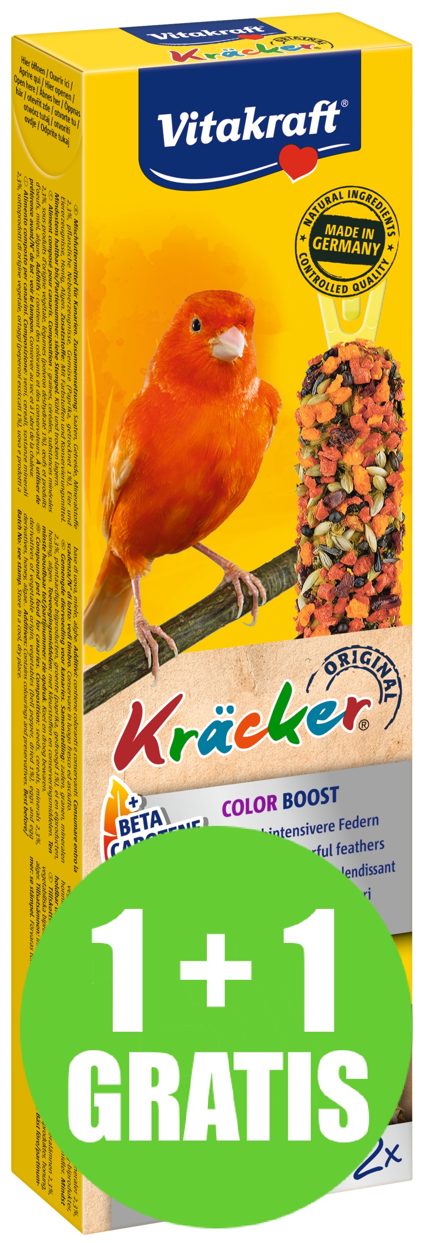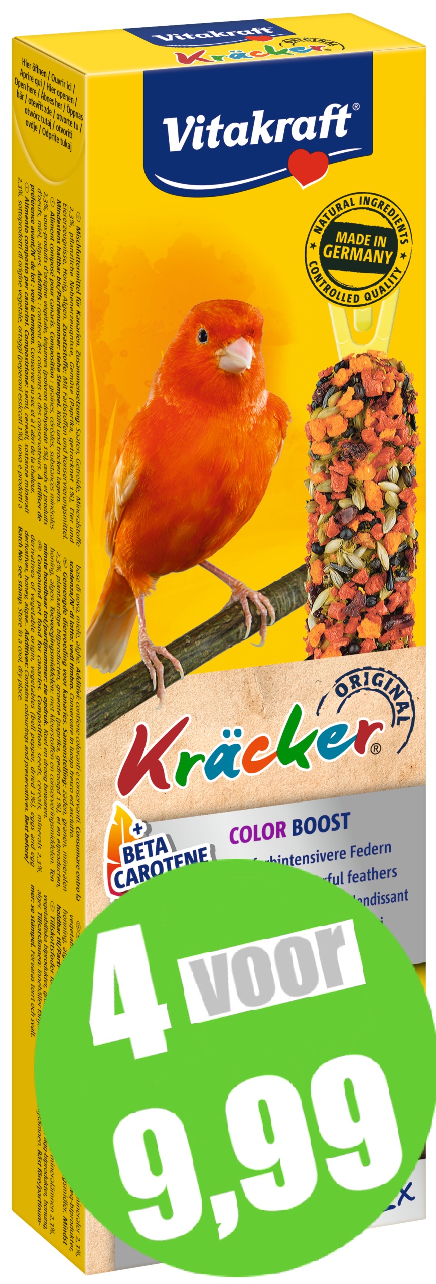 De Vitakraft Kräcker, een 2x op natuurlijk houten stokje gebakken lekkernij voor veel eetplezier. De vogel moet hard werken om de zaden van het stokje te pikken en blijft daardoor in beweging.