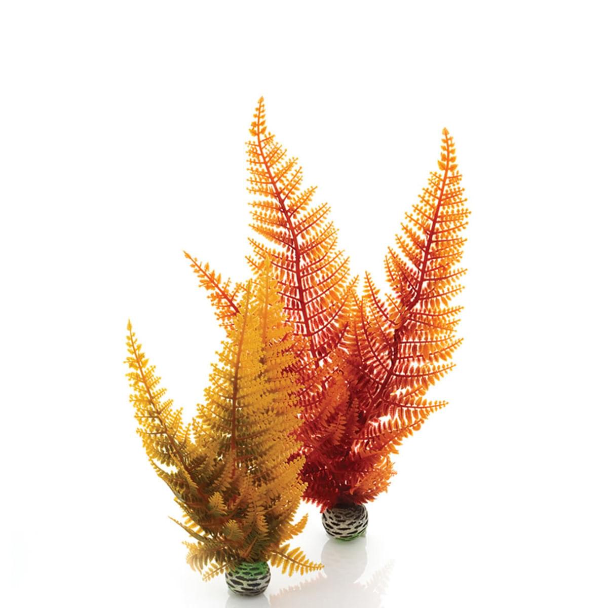De kunststof planten van biOrb worden gemaakt van hoogwaardige materialen. Hierdoor hebben deze planten een ongekend lange levensduur en zijn ze bijna niet van echt te onderscheiden. Deze plantenset bestaat uit twee oranjekleurige herfstvaren welke beide zijn voorzien van een keramische bal. Dankzij dit toegevoegde gewicht zullen de planten mooi op de bodem blijven staan. Met een hoogte van ongeveer 20 en 30 centimeter is deze set speciaal ontwikkeld voor de biOrb aquariums van 30 liter. Uiteraard is deze set ook geschikt voor grotere aquariums van biOrb of aquariums van andere merken.
