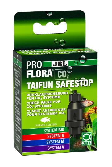- Voorkomt dat water uit het aquarium terugloopt in de CO2 techniek (terugslagventiel)