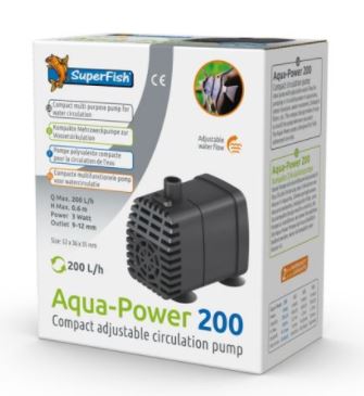 Aqua-Power pompen zijn ideaal voor het opvoeren of circuleren van water in aquaria, kamerfonteinen, biologische filters en andere toepassingen. Aqua-Power circulatie-pompen zijn gemaakt om geheel ondergedompeld te gebruiken. Volledige gebruiksaanwijzing en garantiebewijs is ingesloten.