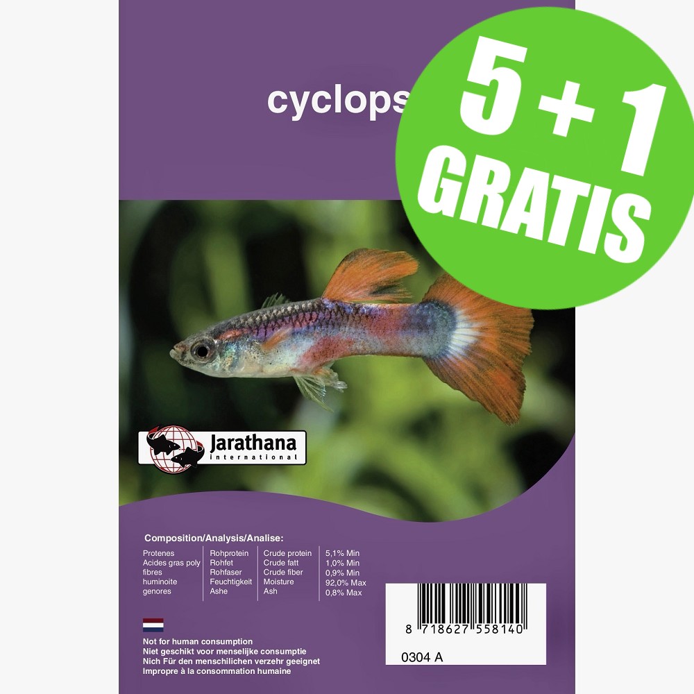 JRT Diepvries Cyclops is hoogwaardig diepvriesvisvoer op basis van cyclops (zoetwaterplankton), speciaal geschikt voor kleine en jonge aquariumvissen. Dankzij de fijne structuur en hoge voedingswaarde wordt dit voer uitstekend opgenomen en stimuleert het de natuurlijke eetlust.