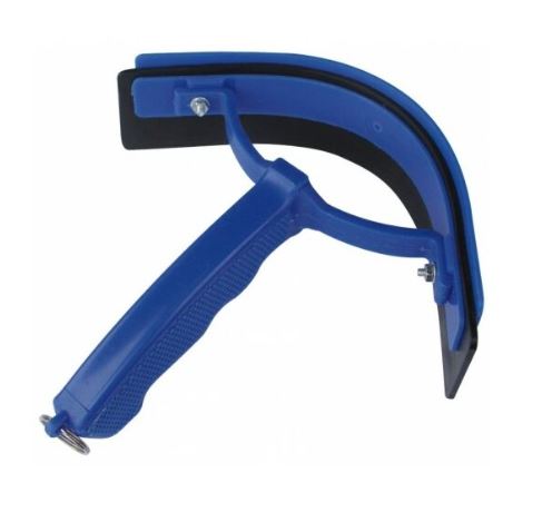 Zweetmes gebogen blauw is van kunststof met rubbereren lip.