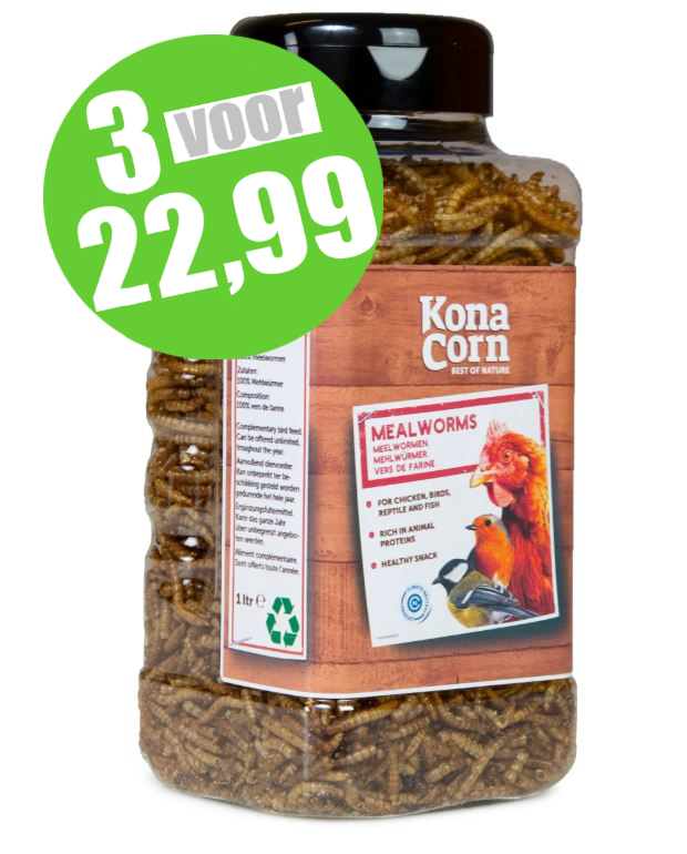 Gedroogde meelwormen zijn een eiwitrijke smakelijke voeding voor o.a. vogels en reptielen. Meelwormen zijn eigenlijk geen wormen, maar larven van de meeltor. De meelwormen worden gekweekt op een plantaardige veilige voeding. Het hoge eiwitgehalte van ongeveer 50% maakt meelwormen geschikt voor vele reptielen, kweekvogels en tuinvogels.
