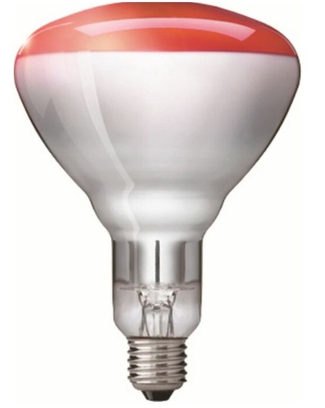Warmtelamp Philips 150 watt rood 230-250V is een infrarode reflectorgloeilamp voor de agrarische, industriële en huishoudelijke sector. De warmtelamp heeft een versterkte constructie dankzij het gebruik van hardglas.