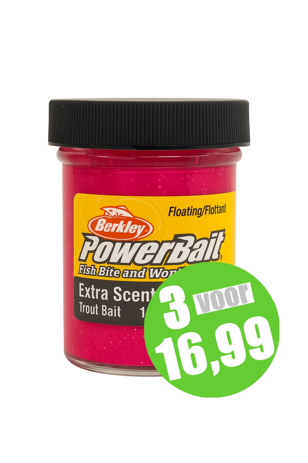 12105573Berkley PowerBait Extra Scent Glitter Troutbait Fluo Red 50 gr