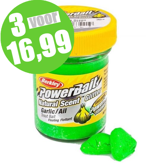 De Berkley PowerBait Natural Scent Glitter Garlic Troutbait in Spring Green is een van de meest populaire keuzes onder forelvissers dankzij de krachtige combinatie van geur, kleur en glitter. Deze variant heeft een frisse, felgroene kleur die uitstekend zichtbaar is in zowel helder als licht troebel water.