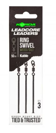 De Korda Kable Leadcore Leader Ring Swivel Gravel 50 cm is een kant-en-klare leader voor karpervissers die snel, netjes en betrouwbaar willen vissen. Deze uitvoering is voorzien van een geïntegreerde ring swivel, waardoor je eenvoudig een passende onderlijn monteert. De leader is gemaakt van sterk Kable leadcore, zinkt goed af en sluit dankzij de gravel-kleur mooi aan op een grindachtige of harde bodem.
