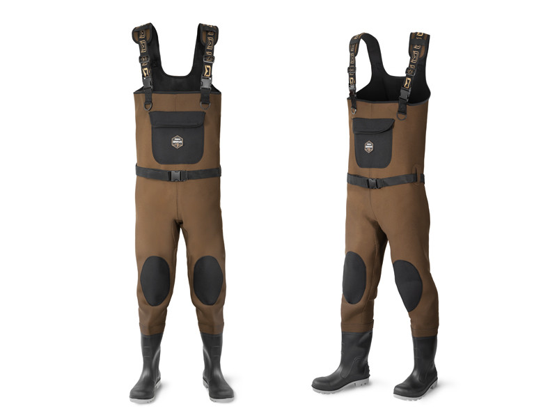 Bij het vissen in de winter is warmte het allerbelangrijkste. De neopreen waadpakken van Delphin ORAVA bieden hiervoor de perfecte oplossing. Ze hebben een elegant design en zijn vervaardigd met hoogwaardige materialen. Elke steek en naad is met precisie afgewerkt om lekkage te voorkomen. Dankzij de bruine kleur vallen slijm en andere vlekken minder op. In een klassiek neopreen zakje aan de voorkant kunt u kleine spullen zoals uw visvergunning opbergen. U hoeft zich geen zorgen te maken over knielen, want de waadpakken zijn op deze plekken versterkt met een dubbele neopreenlaag. De verstelbare schouderbanden zijn voorzien van een neopreen voering voor extra comfort tijdens lange visuitjes. Onder de schouderbanden bevinden zich twee plastic ringen waaraan u diverse accessoires zoals een meetlint of pincet kunt bevestigen met behulp van een yo-yo of karabijnhaak. De waadgordel voorkomt dat er water in uw waadpak komt als u uitglijdt of valt. De rubberen laarsjes hebben duurzame en stabiele zolen die bestand zijn tegen de zwaarste omstandigheden. Ze zijn gevoerd met neopreen inlegzolen voor betere bescherming tegen de kou.