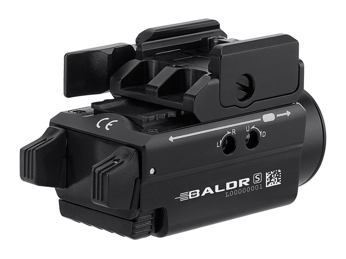 De Olight Baldr S is een ultra-compacte wapenlamp met groene laser, speciaal ontwikkeld voor tactische situaties. De Baldr S laat zich eenvoudig op een pistool monteren dankzij een handige snel-sluiting. De high power LED lamp geeft een lichtbundel van max 800 Lumen. De groene laser (richtmiddel) is zowel afzonderlijk als gelijktijdig met de lamp te gebruiken. De schakelaar bevindt zich aan de achterzijde van de lamp en is aan twee kanten te gebruiken (rechts en linkshandig gebruik). De Baldr S wordt geleverd met twee (passtukjes) adapters, namelijk één voor aansluiting op een Picattiny rail (MIL-STD-1913 rail) en de ander voor een Glock rail.