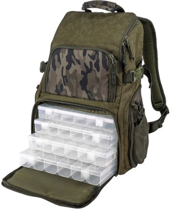 De Spro Double Camou Back Pack is een rugtas met de mogelijkheid een hengel te bevestigen aan de zijkant ,ideaal wanneer u zich regelmatig moet verplaatsen tijdens het struinen. De tas beschikt over een grote opslag capaciteit en heeft voldoende extra opbergvakken om de kleinere accessoires een plaats te geven.De Double Camo Back Pack word geleverd met 4 accessoire dozen met een afmeting van 27,5x18x4cm.