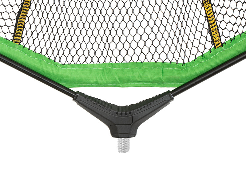 Omdat de kop op het wateroppervlak drijft, kunt u hem daar laten liggen totdat u de vis hebt uitgeput en naar het schepnet kunt leiden. Het ontwerp past bij de groen-zwarte kleuren van onze REAXE-serie. Het frame is dubbelvouwbaar en neemt minder ruimte in beslag dan standaard schepnetkoppen.