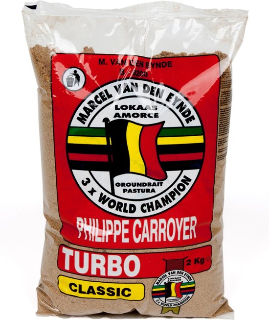 Turbo werd ontwikkeld met Philippe Carroyer, meervoudig Belgisch international. Het is een kant en klaar samengesteld voer voor zowel voorn als brasem in stilstaande en of langzaam stromende wateren. Bij diep of sterk stromend water kan Turbo worden verzwaard met secret(voorn) of kanaal(brasem). Bevochtigen in drie tijden voor homogeen resultaat.
