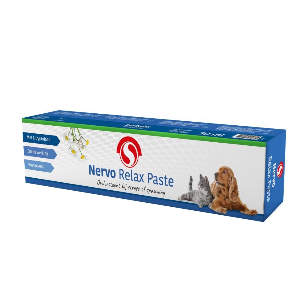 Aanvullend dieetvoeder voor honden en katten. Nervo Relax Paste is een snelwerkende pasta die het dier helpt om te gaan met stresssituaties. Werkt ontspannend zonder suf te maken.
