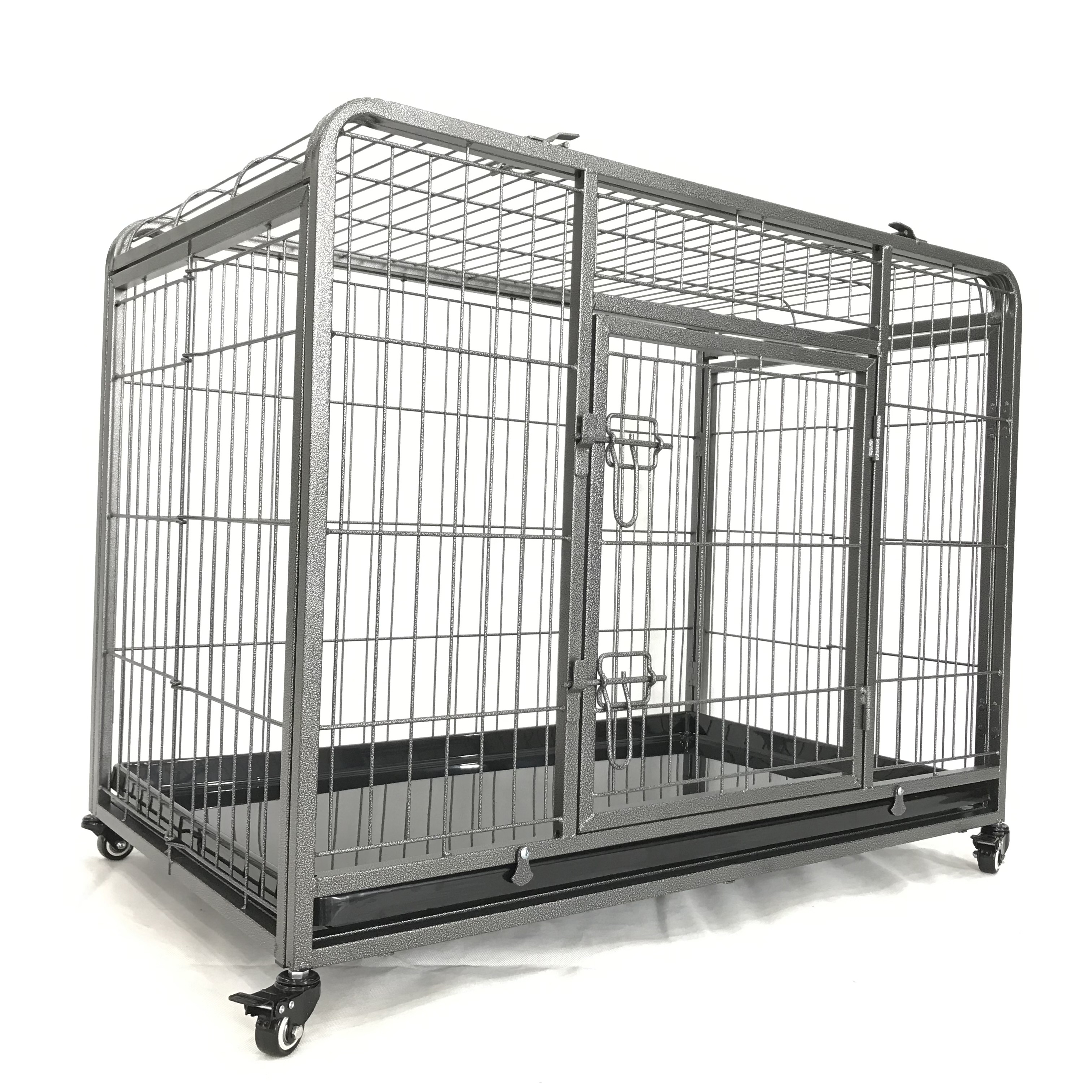 Het hoogwaardig ijzeren frame met spijlen garandeert een extreem stabiele bench. De bench is bekleed met een duurzaam poedercoating die roest-, corrosie- en kleurvast zelfs in de meest extreme weersomstandigheden. Er zijn 2 deuren, een voordeur en een luik aan de bovenkant voor een gemakkelijke toegang. De afneembare plastieken schuif maakt het schoonmaken heel eenvoudig. Dankzij de wielen kan je de bench gemakkelijk verplaatsen, de rem zorgt voor extra stabiliteit.