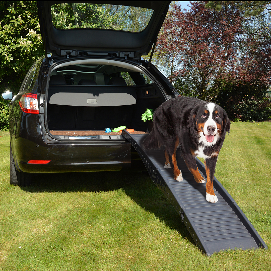 Easy Step loopplank is een ideaal hulpmiddel om honden te assisteren bij het in- en uitstappen in een voertuig of andere hoger gelegen plaatsen. Uitermate geschikt voor oudere honden en honden met overgewicht of gewrichtsproblemen tot 50kg. De loopplank kan u gemakkelijk opvouwen tot een compact formaat en is voorzien van een handvat.