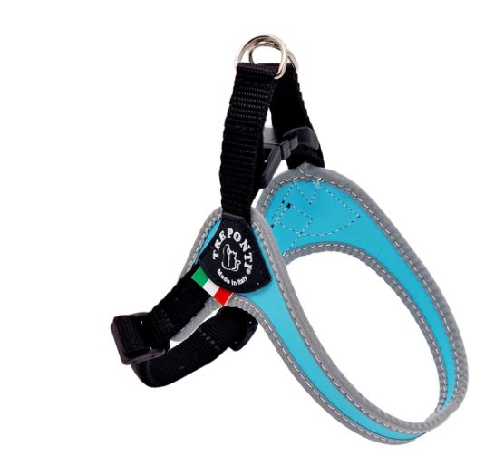 De handgemaakte, Italiaanse Fibbia Basic verstelbare tuigjes van Tre Ponti zijn ontwikkeld als 'wandel' tuigje en geschikt voor kleinere honden van 1 tot maximaal 14 kilo. De bovenzijde van dit instaptuig is voorzien van een gesp en 2 ringen om de lijn aan te bevestigen (altijd beide ringen gebruiken). Het kunststof basismateriaal is sterk, neemt geen water op en houdt geen haren vast. De verstelbare Fibbia tuigjes zijn optimaal als de hond nog in de groei is of regelmatig getrimd wordt. Deze is voorzien van veilige, sterk reflecterende randen.