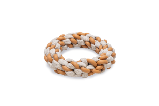 Met Beeztees Puppy Dental Touwring Mik geef je jouw pup een geweldig hondenspeeltje dat niet alleen leuk is om mee te spelen, maar ook bijdraagt aan de mondverzorging. Dit hondenspeelgoed in de vorm van een ring is gemaakt van een combinatie van TPR (thermoplastisch rubber) en katoen. Hierdoor is het puppy speeltje ook elastisch wat zorgt voor een leuk effect tijdens het samen spelen. Deze puppy speelgoed ring is speciaal ontworpen om de tanden van jouw puppy te reinigen en het tandvlees te masseren tijdens het spelen. De zachte, maar stevige structuur stimuleert de kauwbehoefte van jouw pup en helpt bij het verlichten van ongemakken tijdens het wisselen van tanden.