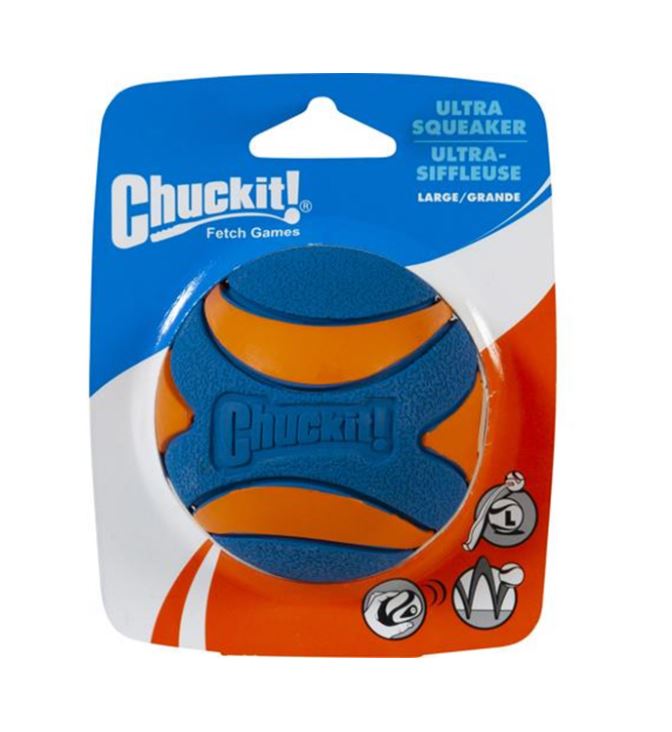 Natuurlijke rubberen bal met squeaker die perfect stuitert en super duurzaam is. Daarnaast is de Chuckit Ultra Squeaker Ball zeer gemakkelijk schoon te maken. Perfect te gebruiken in combinatie met de Chuckit Launchers!
