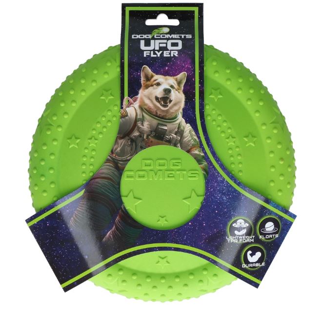 Ga op een buitenaards avontuur met deze duurzame frisbee van 100% TPR schuimrubber! Perfect om ver weg te werpen voor eindeloos apporteerplezier. Dankzij het speciale materiaal is de frisbee bestand tegen bijten en kauwen. Bovendien drijft deze frisbee op water!