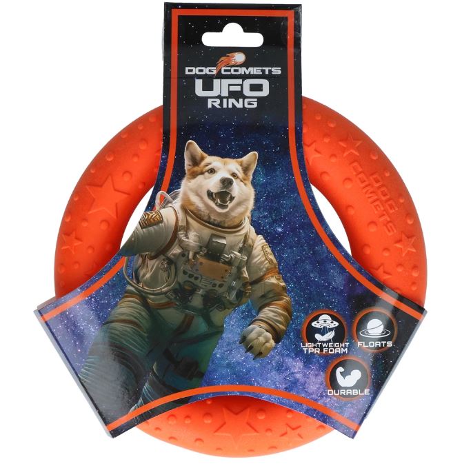 Ga op een intergalactisch avontuur met deze duurzame ring van 100% TPR schuimrubber! Perfect voor trekspelletjes, bestand tegen kauwen en bijten en ideaal om ver weg te werpen voor optimaal apporteerplezier. Bovendien drijft deze ring op water!