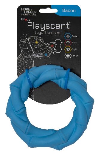 - Verrijkt met Bacon Smaak: De Playscent Ring is doordrenkt met een bacon aroma, wat het extra aantrekkelijk maakt voor uw hond en hun zintuigen prikkelt tijdens het spelen.