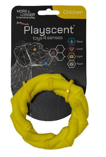 - Verrijkt met Kip Smaak: De Playscent Ring is doordrenkt met een kip aroma, wat het extra aantrekkelijk maakt voor uw hond en hun zintuigen prikkelt tijdens het spelen.