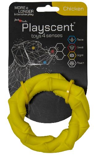 - Verrijkt met Kip Smaak: De Playscent Ring is doordrenkt met een kip aroma, wat het extra aantrekkelijk maakt voor uw hond en hun zintuigen prikkelt tijdens het spelen.