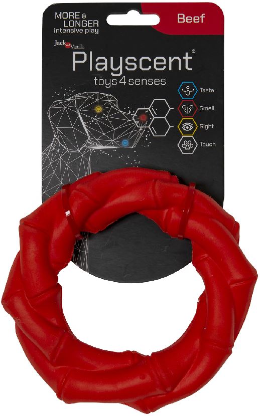 - Verrijkt met Rund Smaak: De Playscent Ring is doordrenkt met een rund aroma, wat het extra aantrekkelijk maakt voor uw hond en hun zintuigen prikkelt tijdens het spelen.