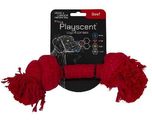 - Verrijkt met Rund Smaak: Het Playscent Touw is doordrenkt met een rund aroma, wat het extra aantrekkelijk maakt voor uw hond en hun zintuigen prikkelt tijdens het spelen.