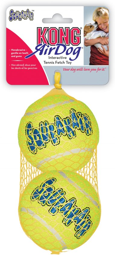 De KONG AirDog Squeakair Ball is een combinatie van twee klassieke hondenspeeltjes — de tennisbal en het piepspeeltje — en is daarmee het perfecte apporteerspeeltje. De duurzame en kwalitatief hoogwaardige Squeakair Ball kan aan het hondengebit geen slijtage veroorzaken. Het is gemaakt van een speciaal, niet-schurend vilt, in tegenstelling tot het schurende materiaal van gewone tennisballen. - Perfect voor apporteerspelletjes - Pieper om spel te stimuleren - Niet-schurende tennisstof zal geen schade toebrengen aan het gebit van de hond
