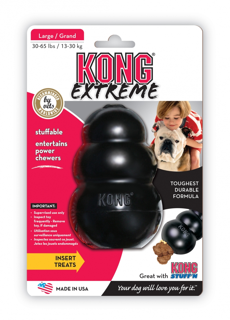 KONG Extreme is de meest onverslijtbare versie van ons originele KONG speeltje. De ultrasterke, ultra-onverslijtbare, zwarte rubberen samenstelling wordt aanbevolen voor de allersterkste kauwers.
