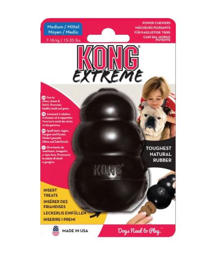 De meest onverslijtbare versie van ons originele KONG speeltje. De ultrasterke, ultra-onverslijtbare, zwarte rubberen samenstelling wordt aanbevolen voor de allersterkste kauwers.