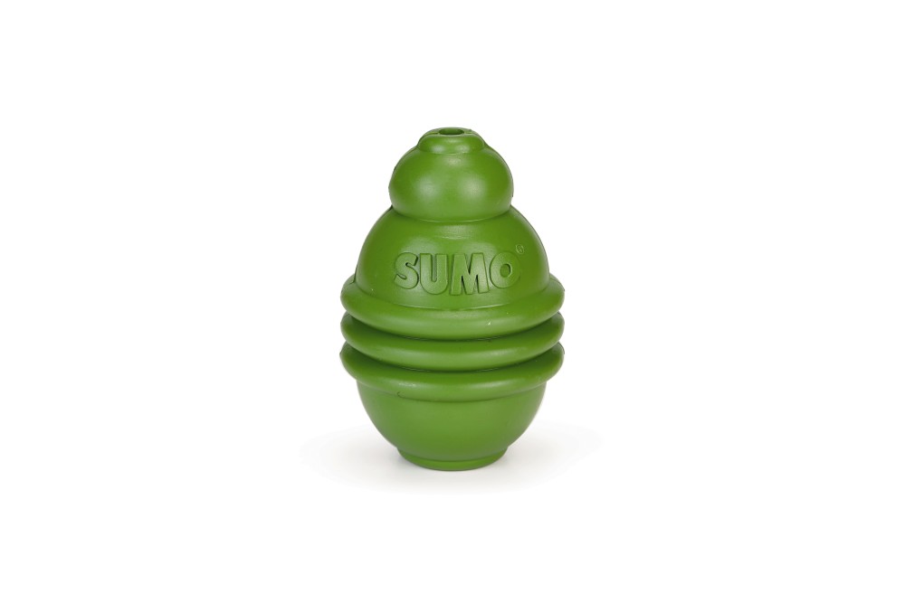 De Beeztees Sumo Play is super sterk hondenspeelgoed gemaakt van natuurlijk rubber. Door de aparte vorm stuitert het speeltje alle kanten op, wat zorgt voor een verrassingseffect. Aan de onderkant is de Sumo Play voorzien van een gat, zodat je het speeltje kunt vullen met iets lekkers. Jouw hond zal vervolgens zijn of haar best moeten doen om de snack of pate eruit te halen. Dit gaat verveling tegen bij jouw hond en het is ook zeer geschikt om jouw hond te laten spelen met de Sumo wanneer hij of zij alleen is. Handig detail: de Sumo is vaatwasserbestendig. - Gemaakt van natuurlijk rubber - Geschikt om hondenkoekjes of pate in te doen - Vaatwasserbestendig - Verkrijgbaar in 2 kleuren en 3 maten Afmetingen: - S: 6x6x8 cm - 3-15 kg - M: 8x8x12 cm - 15-30 kg - L: 10x10x15 cm - 30+ kg