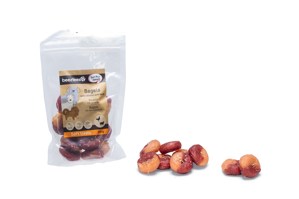 Trakteer jouw trouwe viervoeter op een heerlijke verwennerij met de Beeztees hondensnack bagel kip en lam! Deze smakelijke snack is speciaal ontwikkeld voor honden die niet kunnen kiezen tussen kip en lam. Een gouden duo waar de meeste honden namelijk geen genoeg van kunnen krijgen! Perfect om te geven als traktatie. Door de compacte vorm is deze snack daarnaast ook ideaal om mee te nemen voor onderweg. Goed om te weten: deze bagels zijn vrij van kunstmatige kleur en smaakstoffen en bevatten geen toegevoegde suikers. Zo geef je jouw hond iets lekkers waar jij je als baasje ook goed bij voelt. Deze snacks zijn onderdeel van de Beeztees Tasty Treats.
