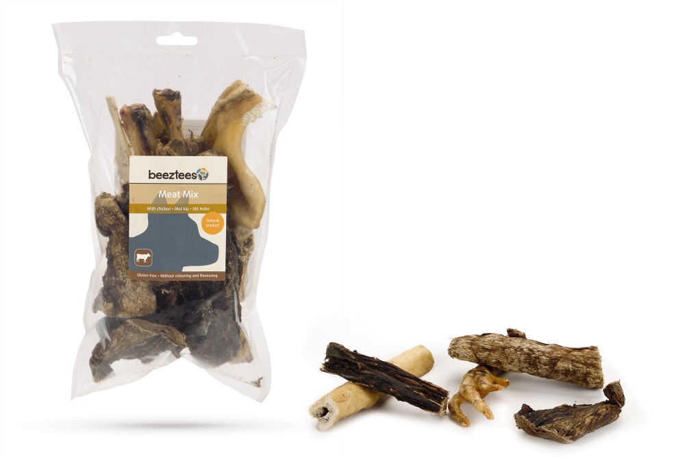 De Beeztees Meatmix is een gevarieerde samengestelde hondensnack, speciaal voor jouw trouwe viervoeter. Deze mix bestaat uit kippenpoten, runderkophuid, runderlever en runderroodvlees. Deze natuurlijke hondensnack is glutenvrij en bevat geen kleur- of smaakstoffen. - Natuurlijk product - Glutenvrij - Geen kleur- en smaakstoffen Verkrijgbaar in 3 verschillende verpakkingen: - 250 gram - 500 gram - 1.000 gram