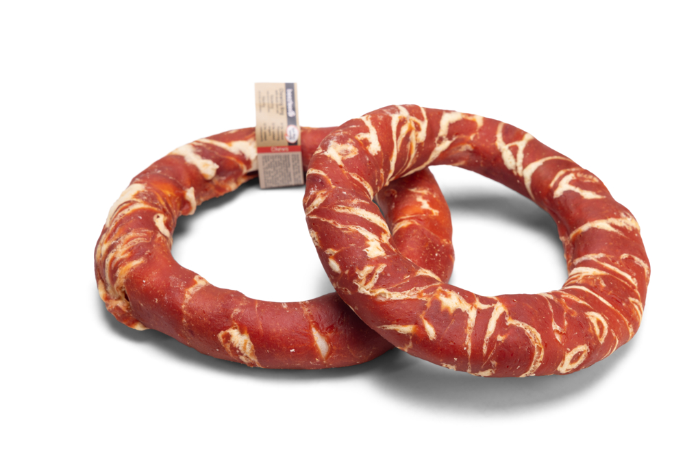 De Beeztees Kauwring met Eend/Kabeljauw is een heerlijke hondensnack waar jouw viervoeter urenlang kauwplezier aan beleeft. Deze smakelijke snack in de vorm van een donut is perfect als beloning of als lekker tussendoortje. Tijdens het kauwen wordt het gebit van je hond op een natuurlijke manier gereinigd, wat bijdraagt aan een gezonde mondhygiëne. Daarnaast zorgt de kauwring voor afleiding en is het een uitstekend tijdverdrijf. Gemaakt van runderhuid en omwikkeld met eend en kabeljauw, biedt deze snack een onweerstaanbare smaakcombinatie. Bovendien bevat de kauwring geen toegevoegde smaak- en kleurstoffen of suikers.