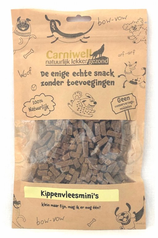 Alle Carniwell vis- en vleesdelicatessen zijn lucht gedroogd, 100% natuurlijk en graanvrij. De snacks zitten handig verpakt in hersluitbare zakjes.