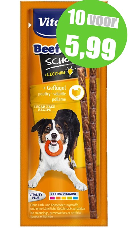 De Beef Stick School bevat tien extra dunne sticks voor het trainen van honden. Verrijkt met lecithine voor optimale ondersteuning van de concentratie van de hond.