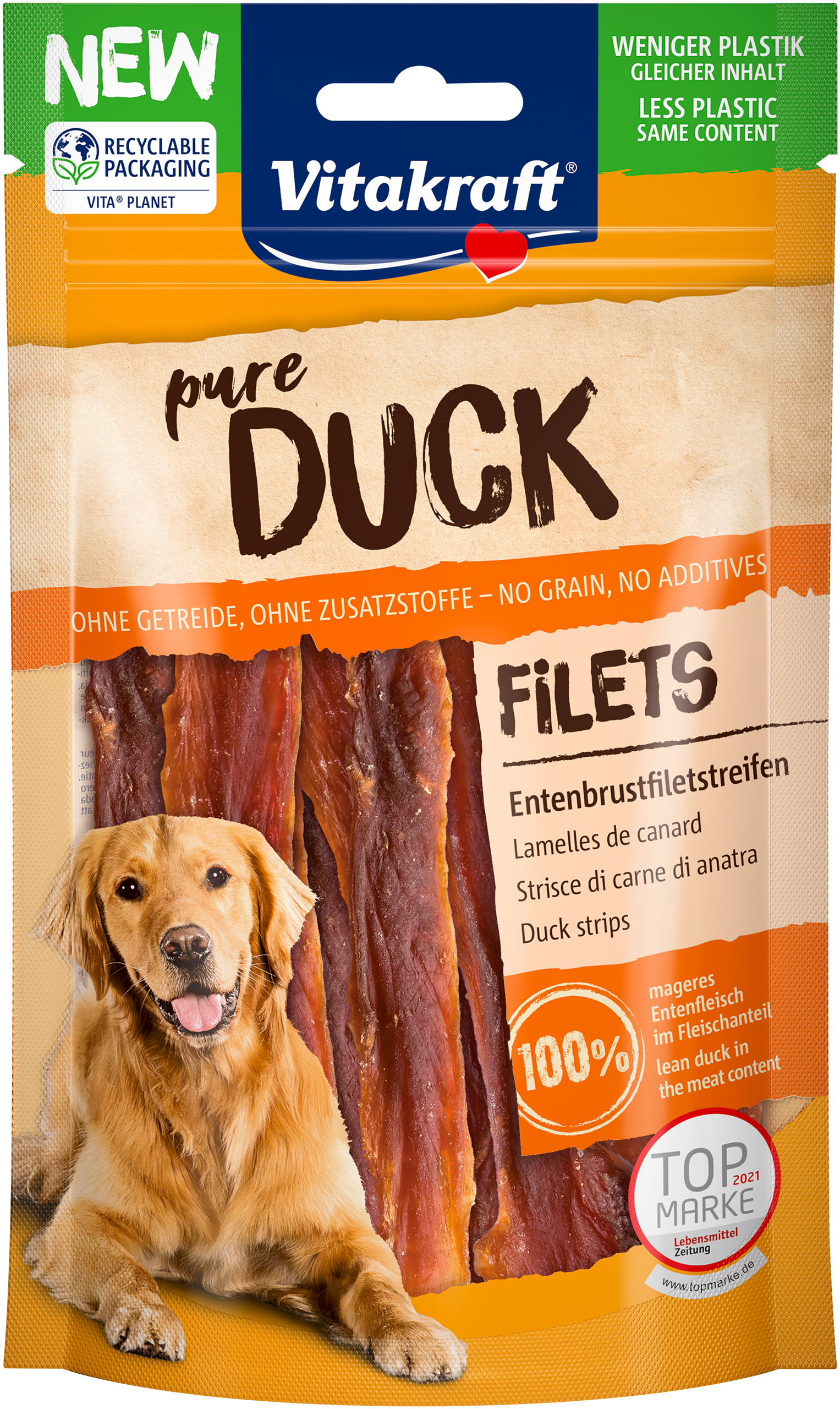 Meest hoogwaardige snack die het water uit de mond laat lopen bij de hond. Heerlijke hondensnack voor tussendoor en/of als beloning. Vervaardigd uit het allerbeste vlees van de eend (100% magere eendenborst).