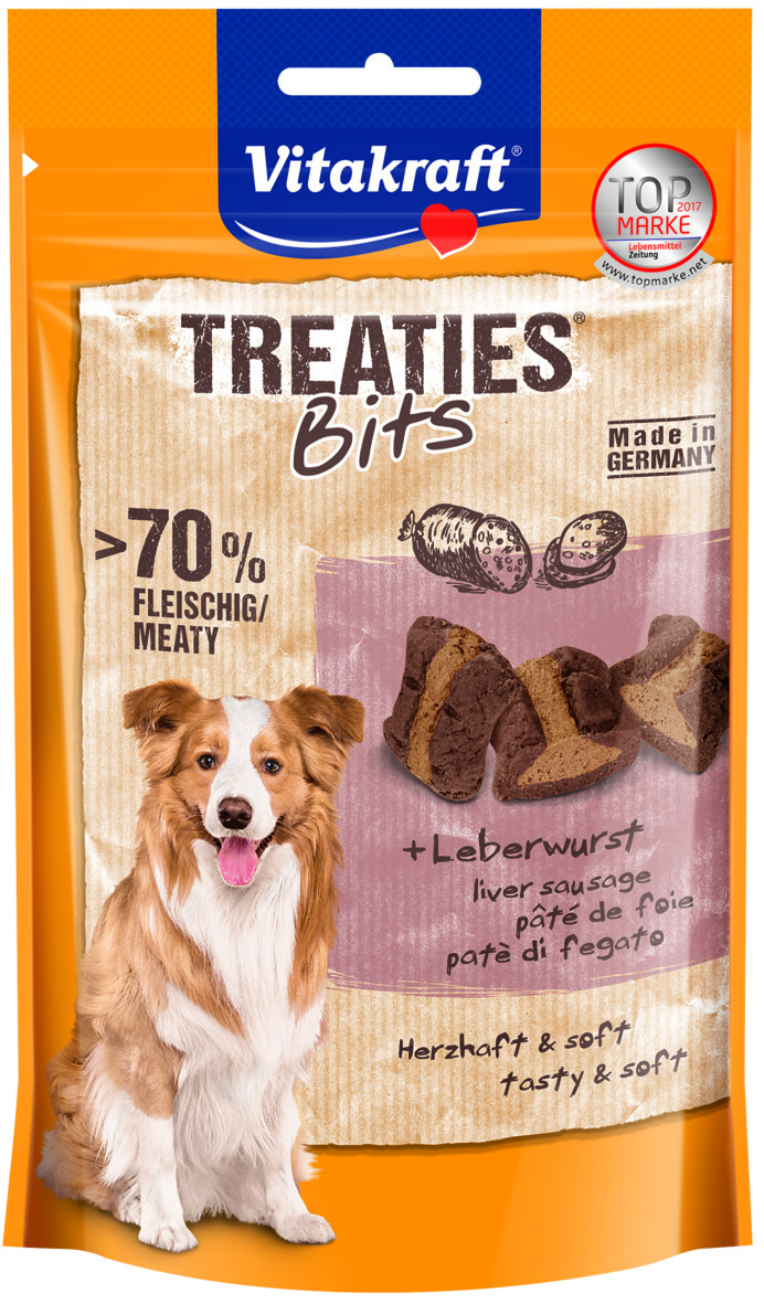 De Vitakraft Treaties Bits zijn onweerstaanbare vleeshapjes die gebakken zijn in de oven. Deze snack heeft een extra hoog vleesaandeel en is verkrijgbaar in de smaken leverworst en kip. Treaties Bits zijn volgens suikervrije receptuur bereid.