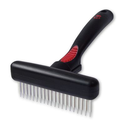 Jean Peau Herderhark Dubbel Roterende Lange/Korte TandDeze hark is voorzien van een dubbele rij lange en korte verende en roterende tanden.Afmeting: 9 cm met een rij van 2,2 cm en een rij van 2,7 cm tanden.